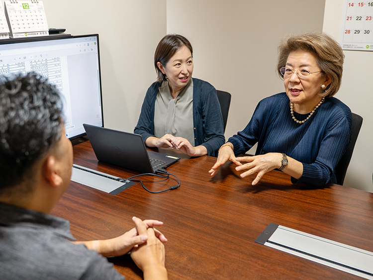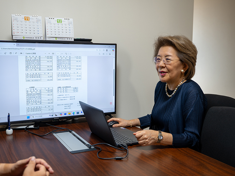 通常はこちらから出向かねばならない融資時の面談も、弊社では、金融機関の担当者に来社していただき、弊社の会議室で私が同席の上面談をいたします。